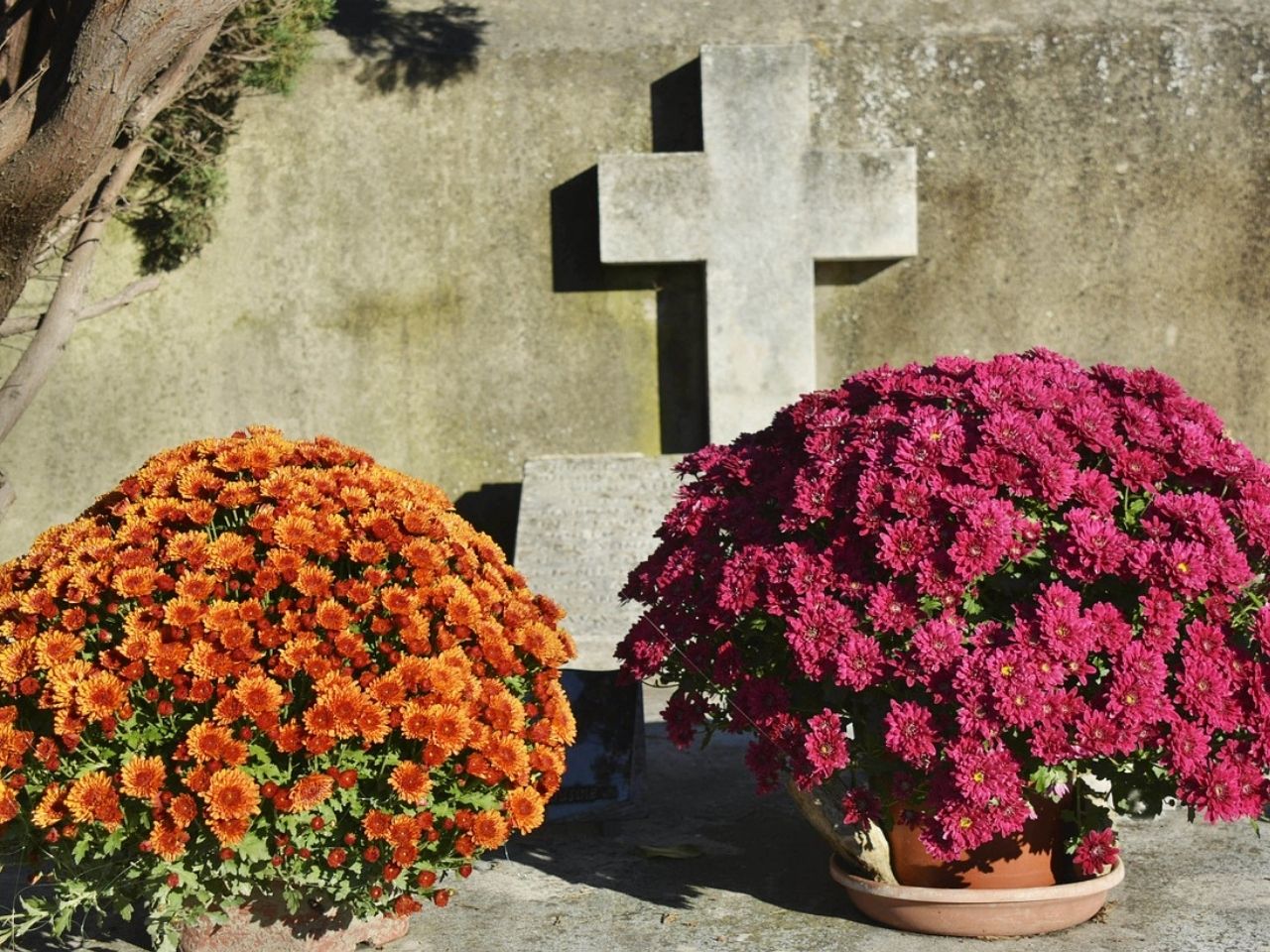 Jeżeli nie mamy możliwości przygotowania stroika na grób, na płycie możemy postawić doniczkę z chryzantemami. Do wyboru całą gamę odmian tych wspaniałych kwiatów, które dostępne są w różnych kolorach – od bieli po ciemny fiolet. Taka roślina w doniczce pięknie ozdobi grób z okazji Święta Zmarłych.